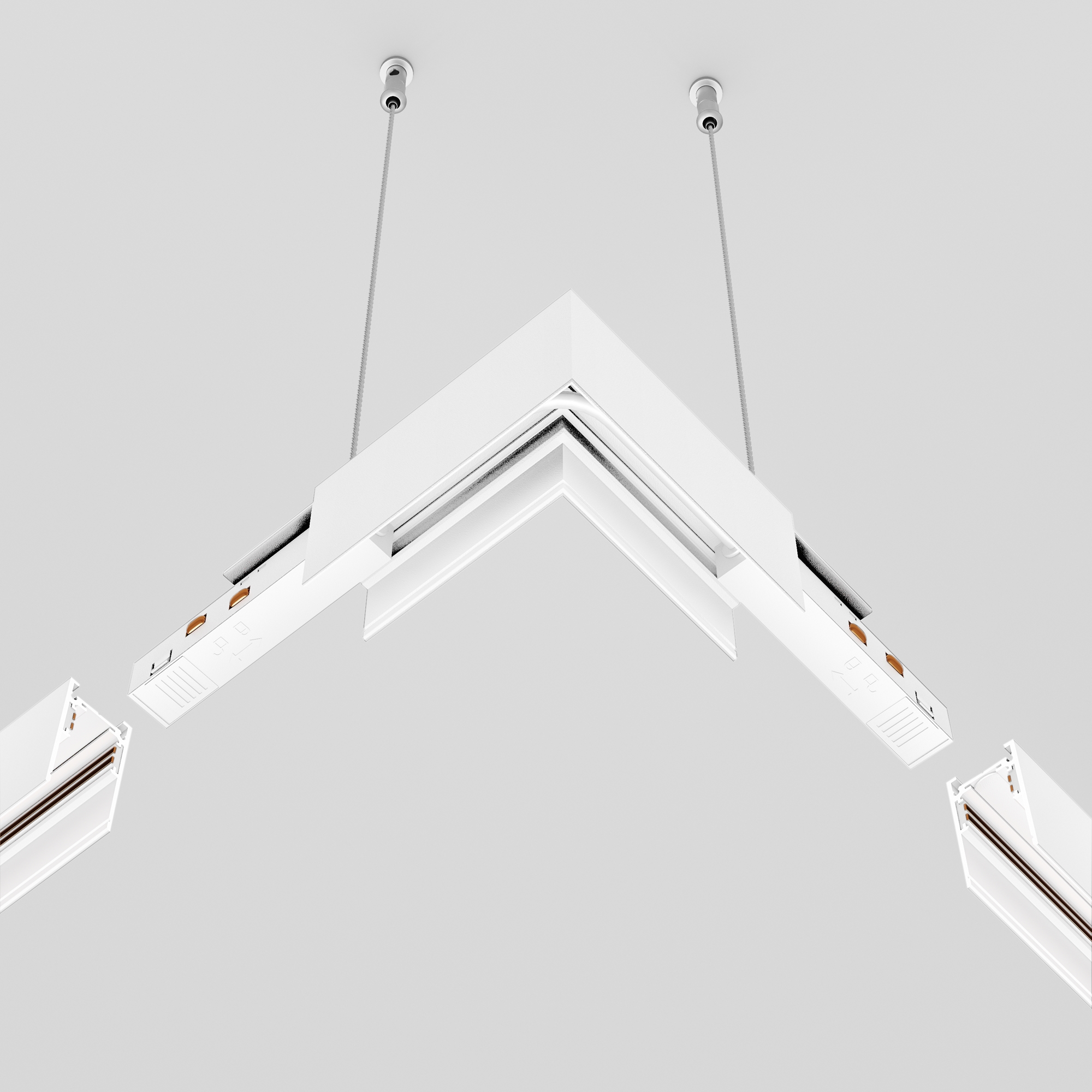 Комплектующие для низковольтной магнитной трековой системы Exility в черном и белом цветах. Разнообразие аксессуаров позволяет собрать свою уникальную конструкцию для накладного монтажа, подвесного, встраиваемого под гипсокартон и встраиваемого в натяжные потолки.