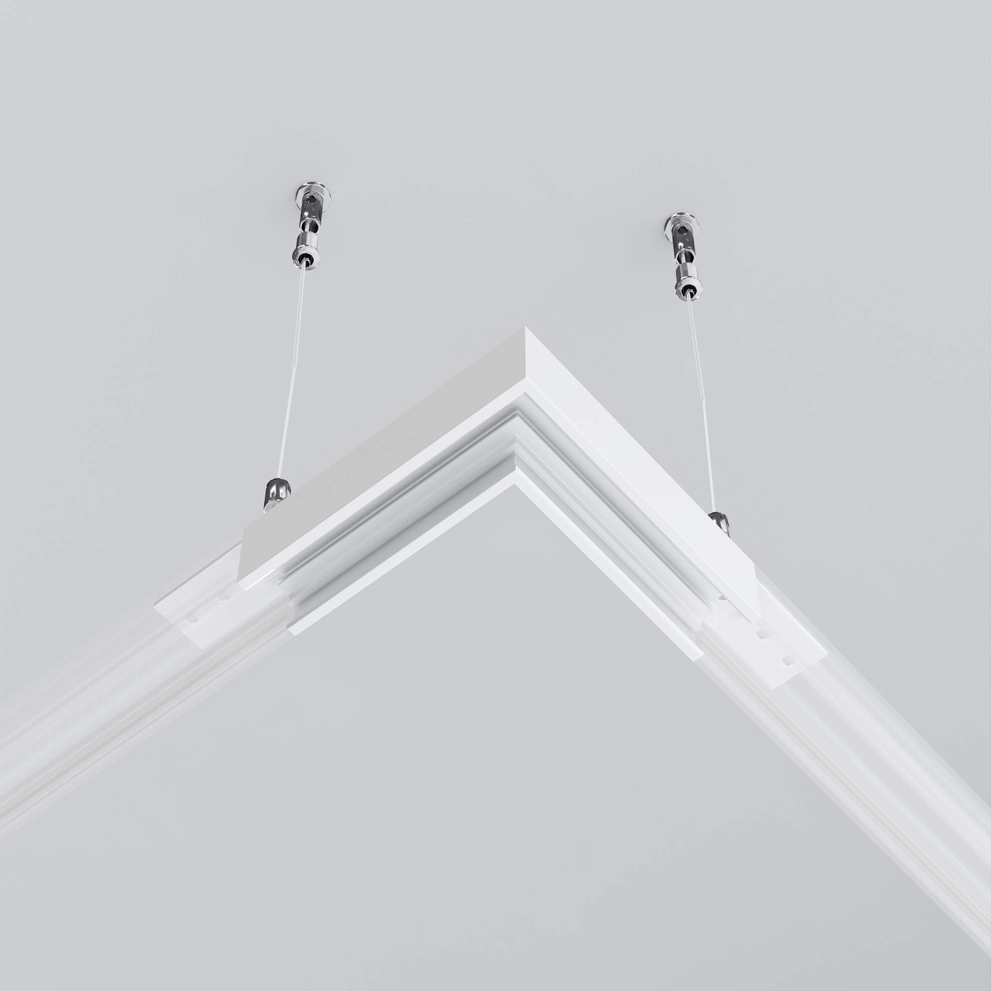 Комплектующие для низковольтной магнитной трековой системы Exility в черном и белом цветах. Разнообразие аксессуаров позволяет собрать свою уникальную конструкцию для накладного монтажа, подвесного, встраиваемого под гипсокартон и встраиваемого в натяжные потолки.